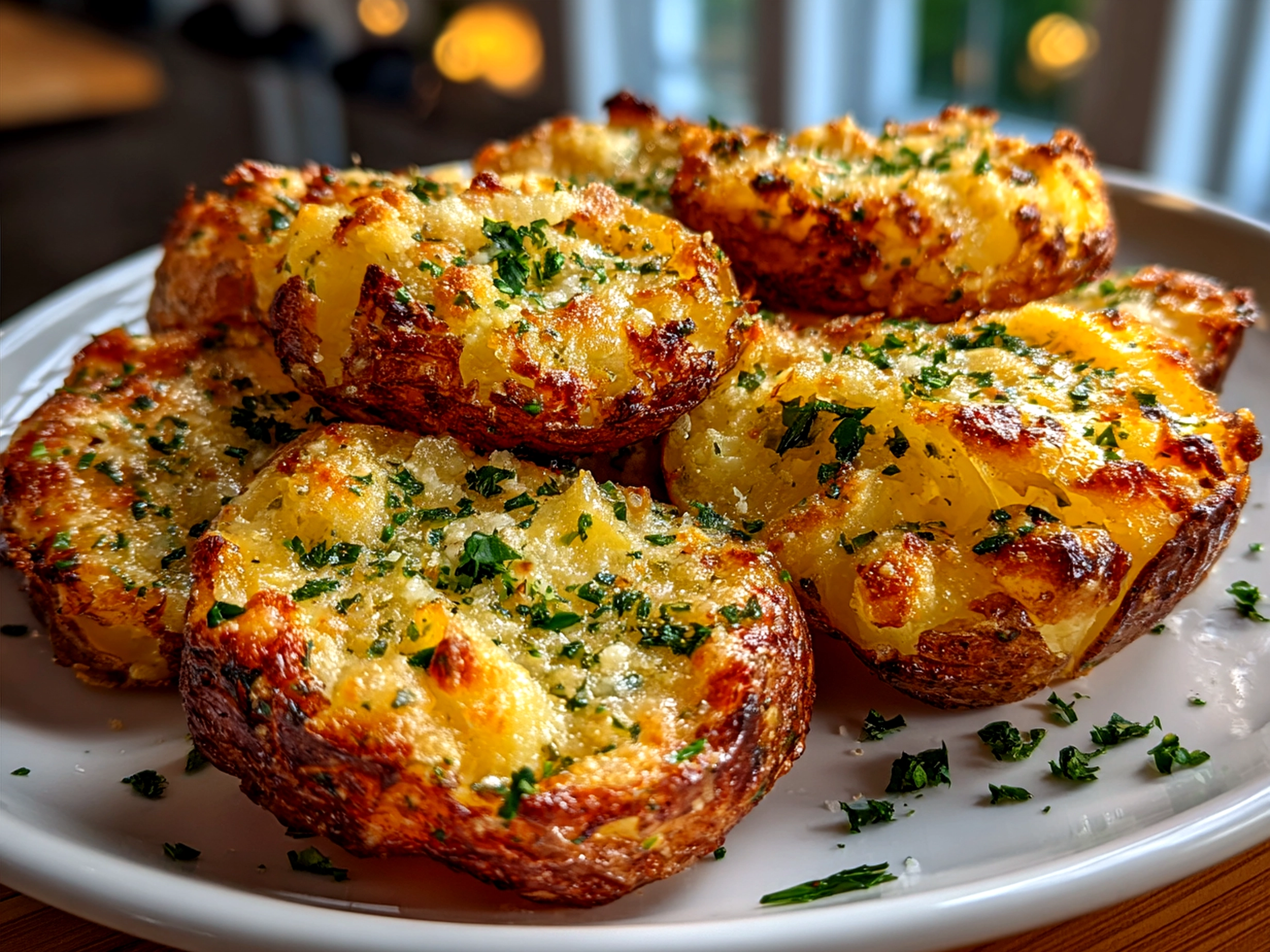 Deliciously Crispy Baked Smashed Garlic Parmesan Potatoes