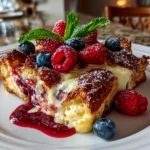 On chilly mornings, a cup of warm tea or coffee pairs perfectly with the croissant French toast bake’s sweet berry flavors. I also like adding a sprinkle of powdered sugar on top just before serving—it makes the presentation feel a little festive without extra effort.