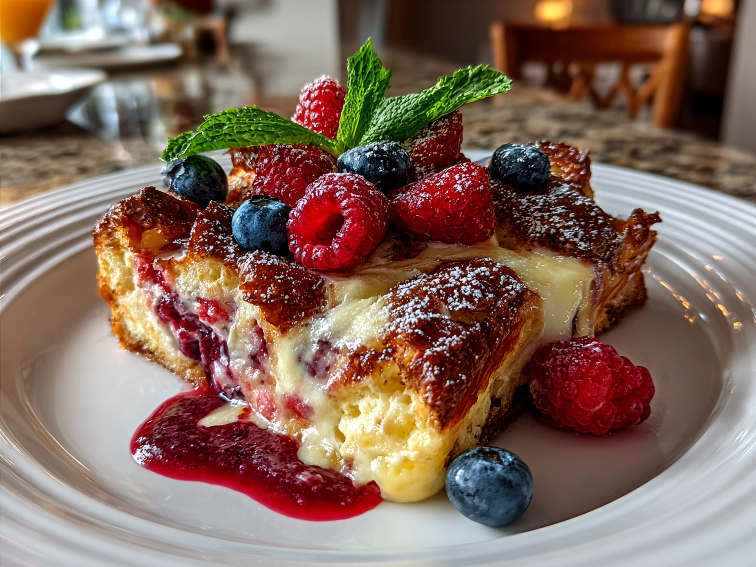 A delightful and easy-to-make breakfast casserole featuring flaky croissants, fresh berries, and a creamy custard, perfect for a sweet morning treat.