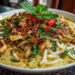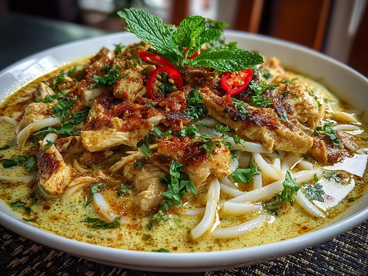 A quick and flavorful chicken laksa recipe that combines creamy coconut broth with tender chicken and fresh herbs for an easy weeknight meal.