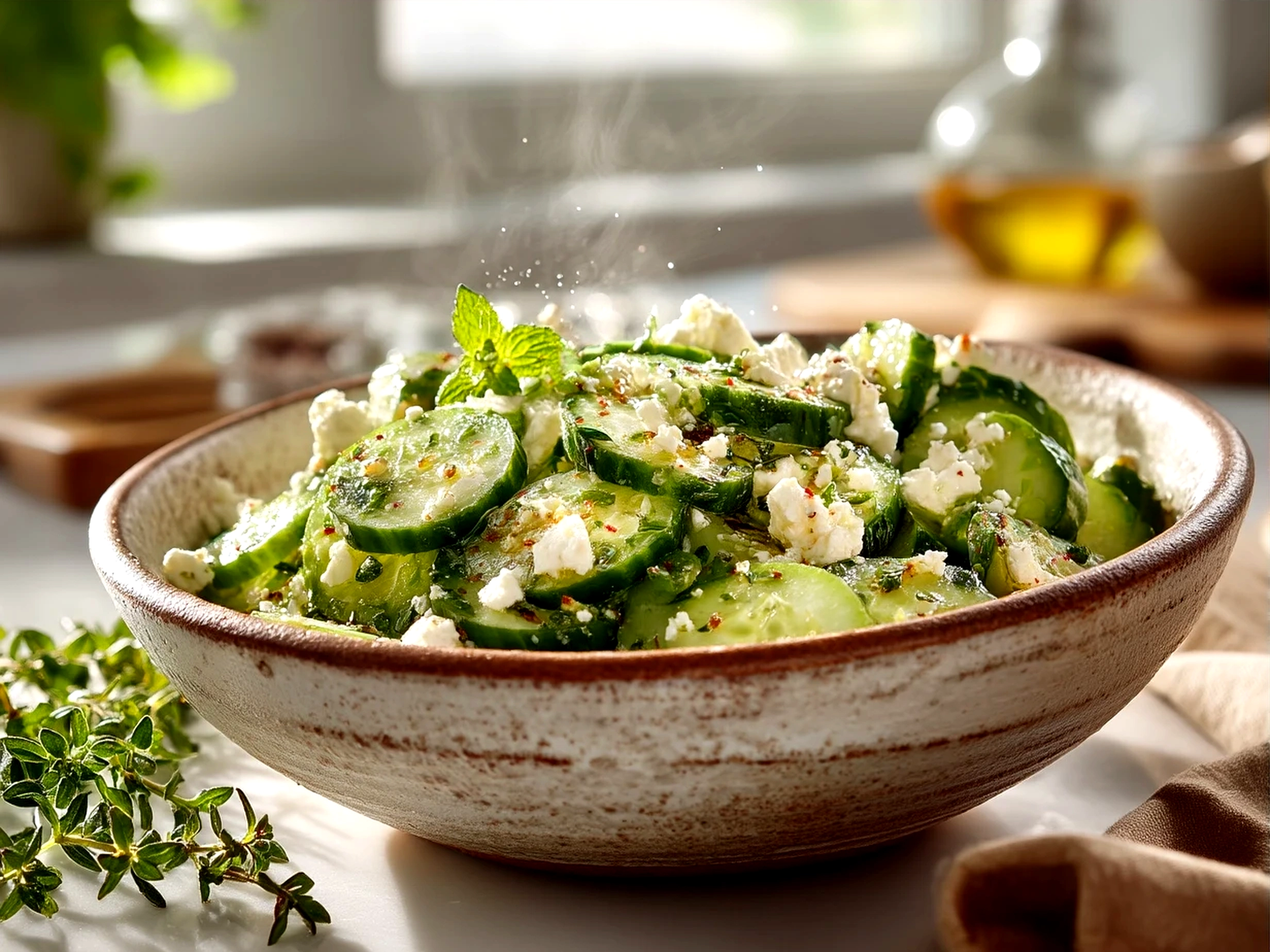 A refreshing and tangy cucumber feta salad perfect for a light lunch or a side dish, combining crisp cucumbers with creamy feta cheese and a zesty dressing.