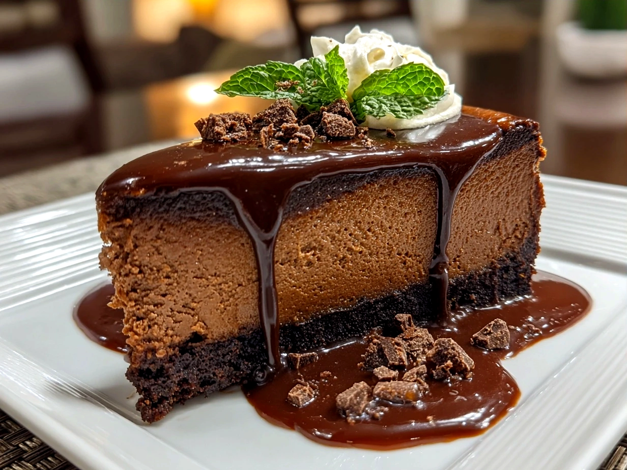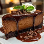 Rich and creamy chocolate cheesecake with a smooth chocolate crust and silky filling, perfect for any dessert lover.