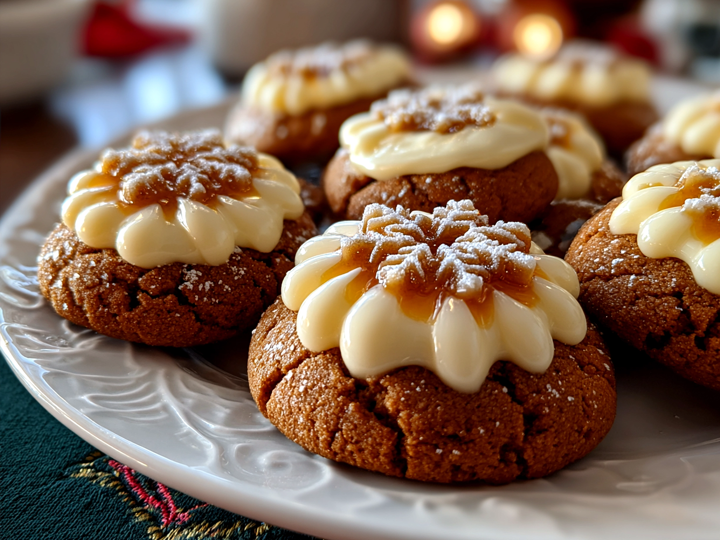 Delight in these festive Eggnog Gingerbread Thumbprint Cookies, combining warm spices with creamy eggnog flavors for a perfect holiday treat.