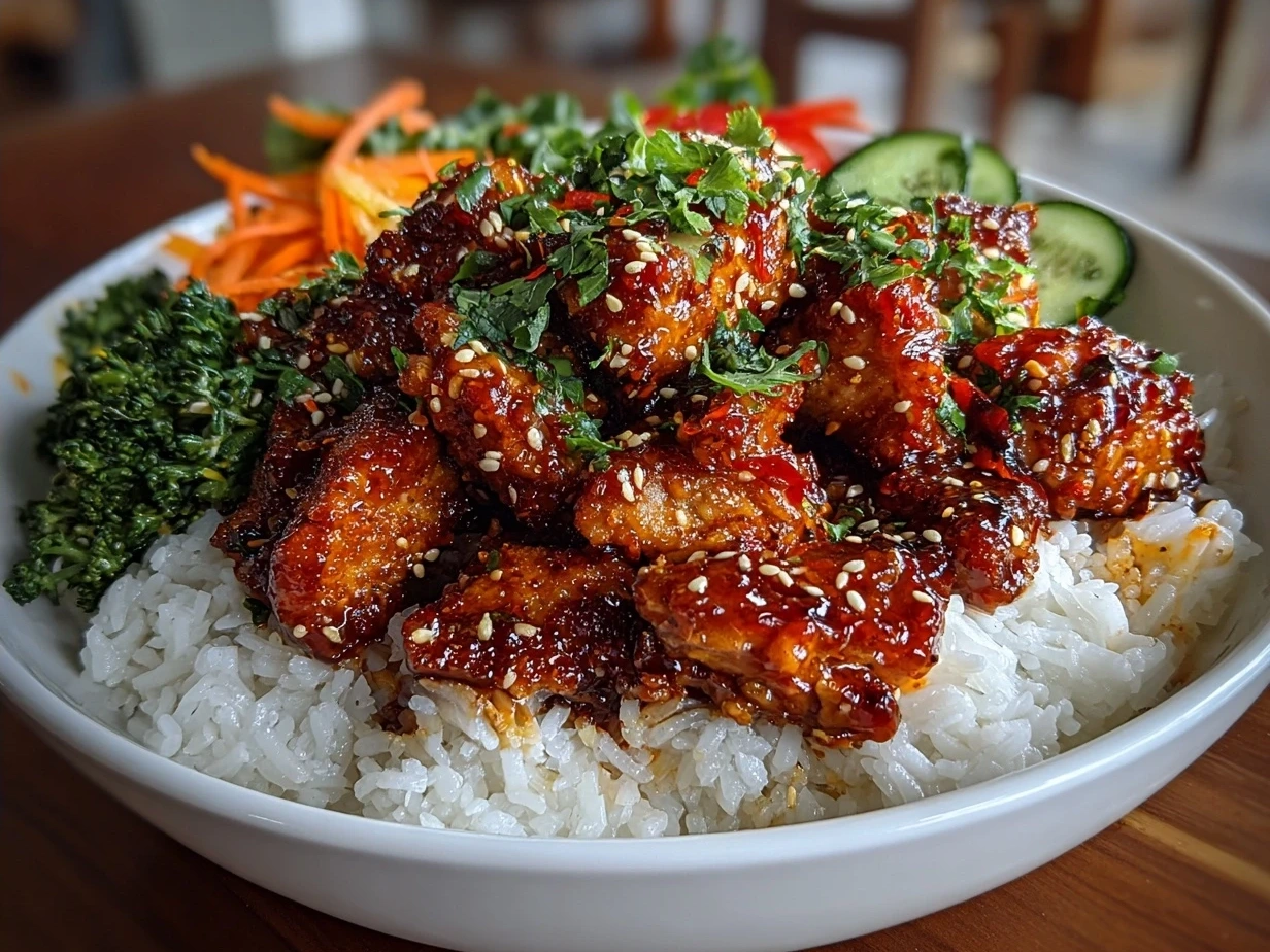 These Honey Sriracha Chicken Rice Bowls combine sweet and spicy flavors with tender chicken served over fluffy rice, perfect for a quick and flavorful dinner.