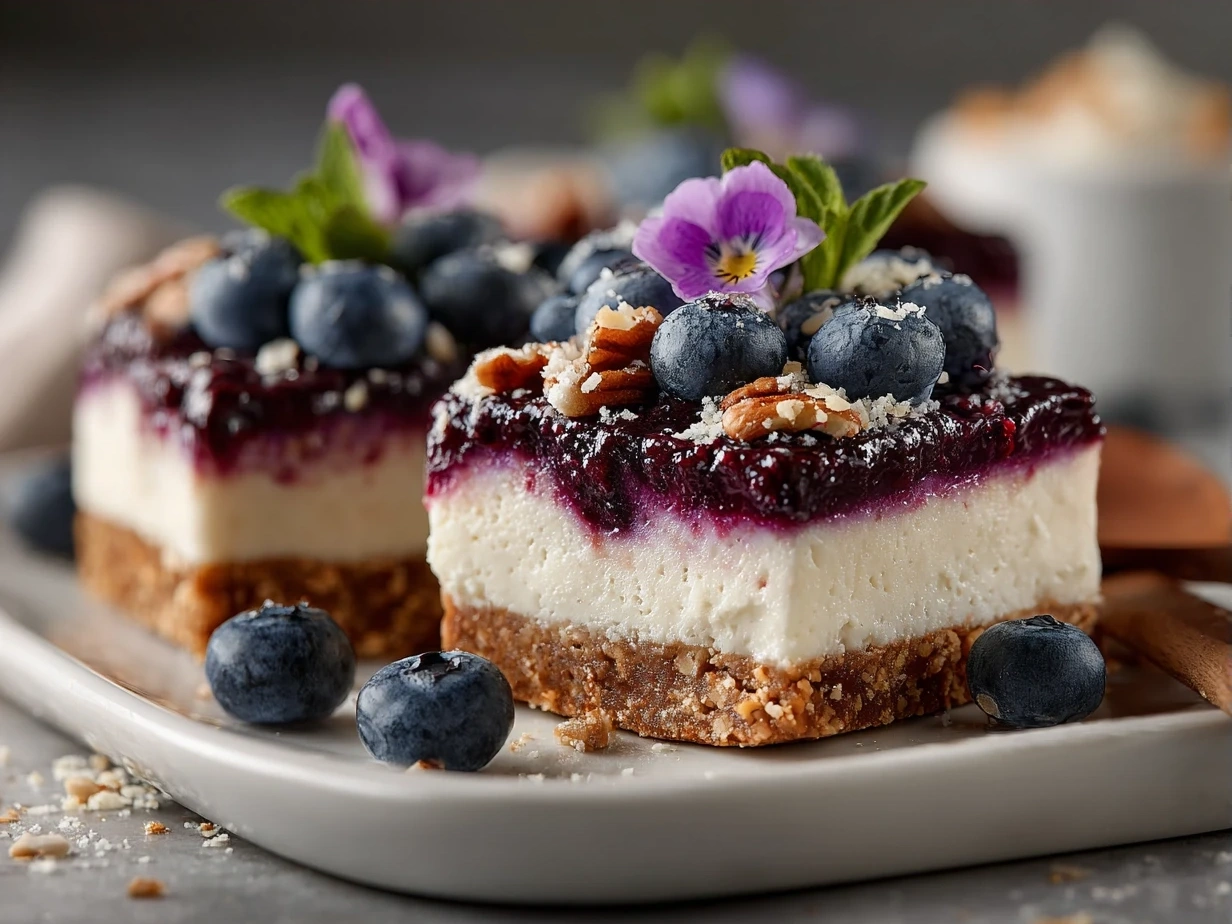 Deliciously Easy Raw Vegan Blueberry Cheesecake Bars for Guilt-Free Treats