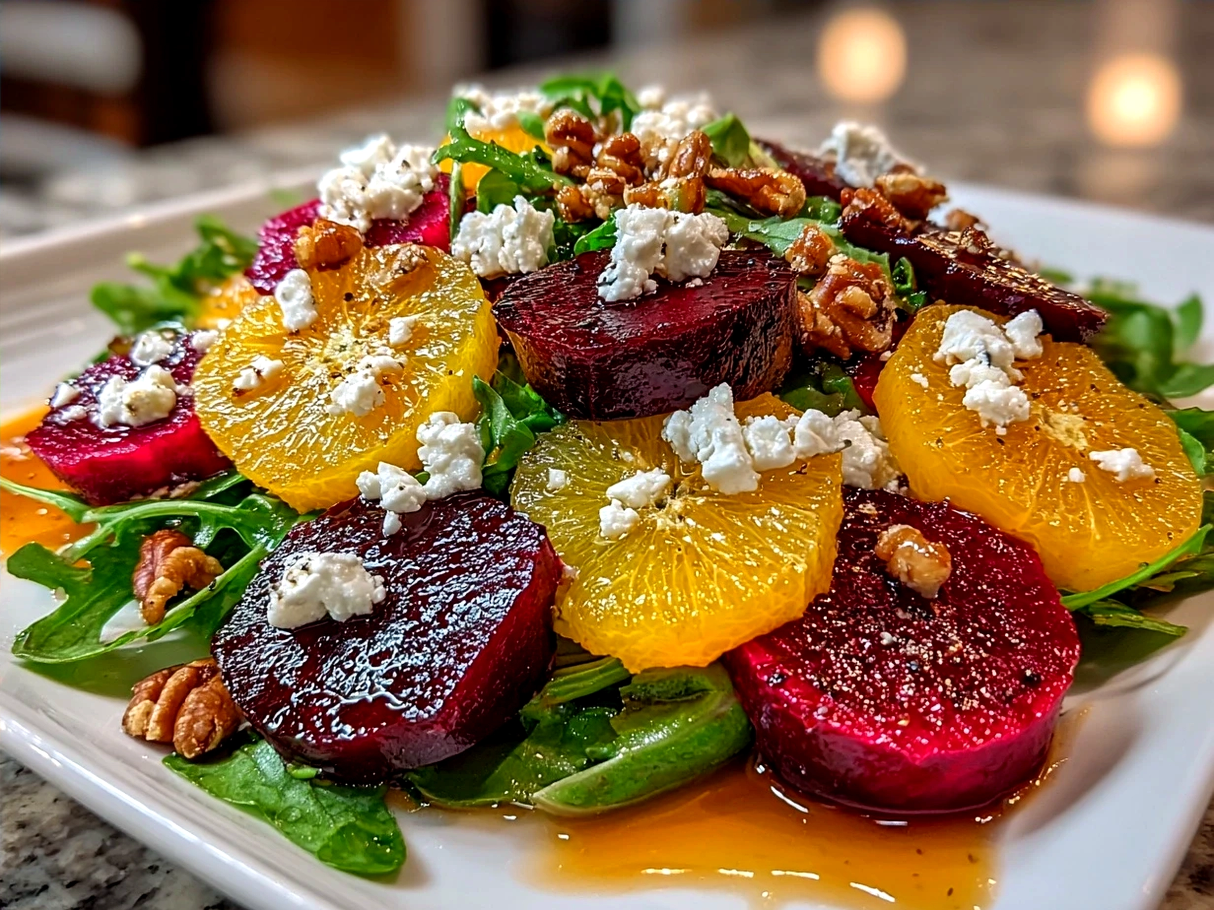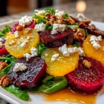 A vibrant and delicious roasted beet salad topped with creamy goat cheese, perfect for a healthy appetizer or light meal.