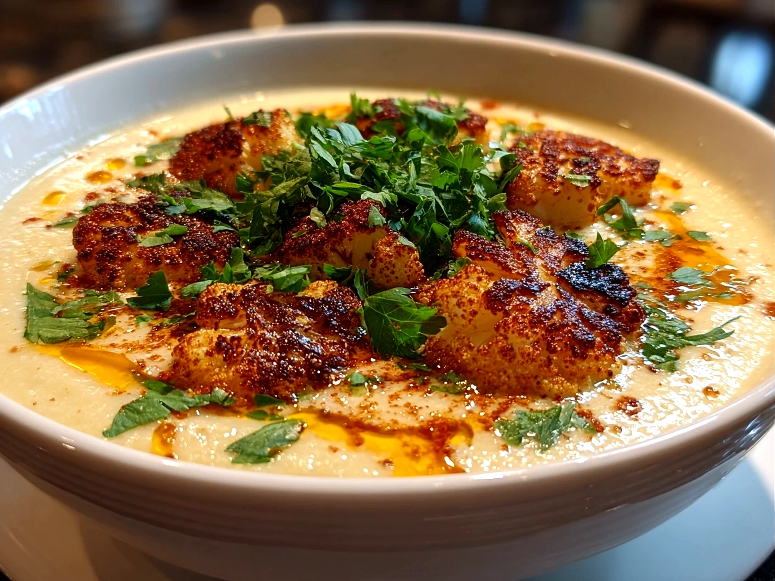 A creamy, comforting roasted cauliflower soup packed with rich flavors and a smooth texture, perfect for a cozy meal any day.
