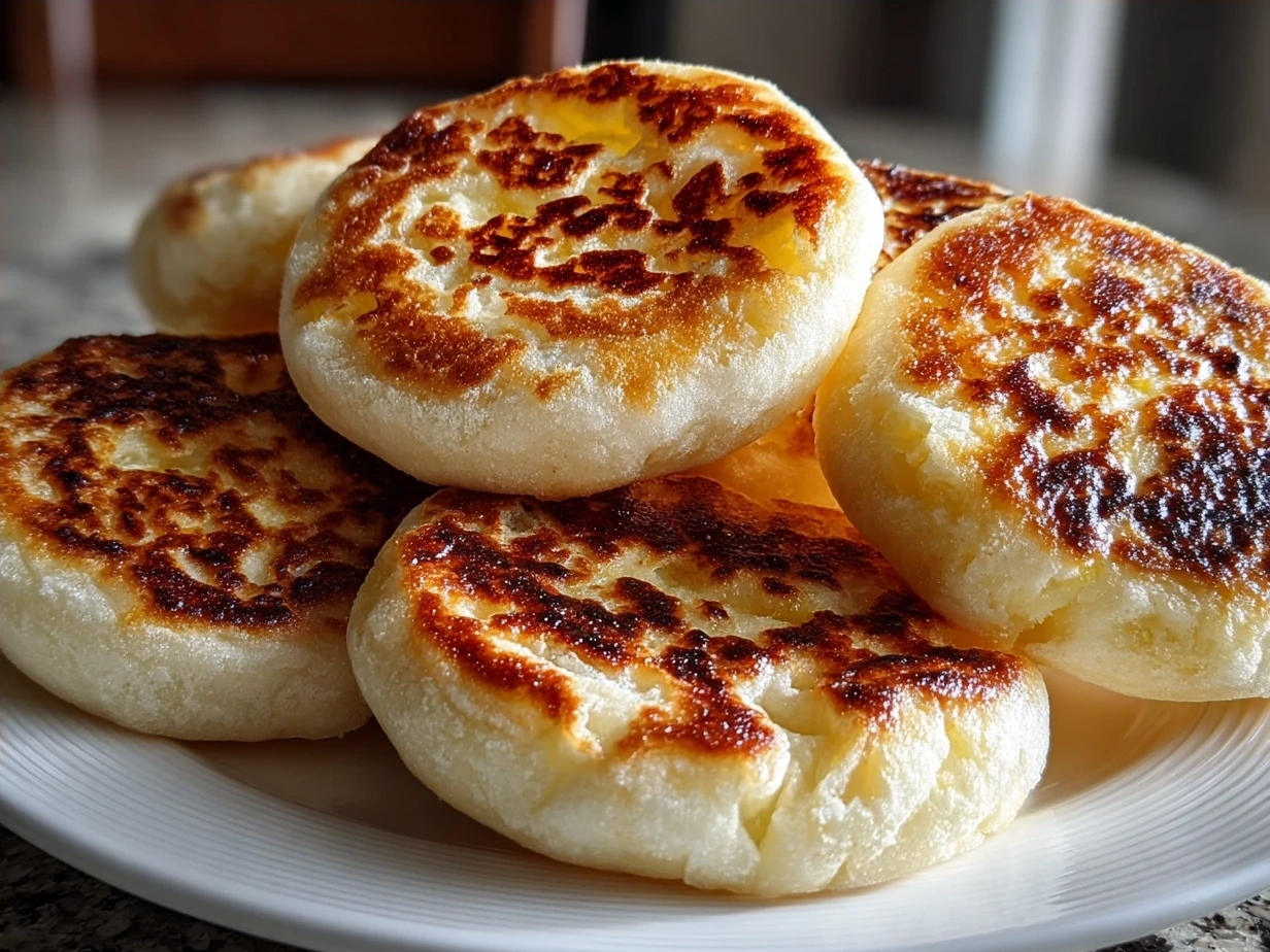 Delightfully tangy and chewy sourdough English muffins with a crisp crust, perfect for toasting and topping with butter or jam.