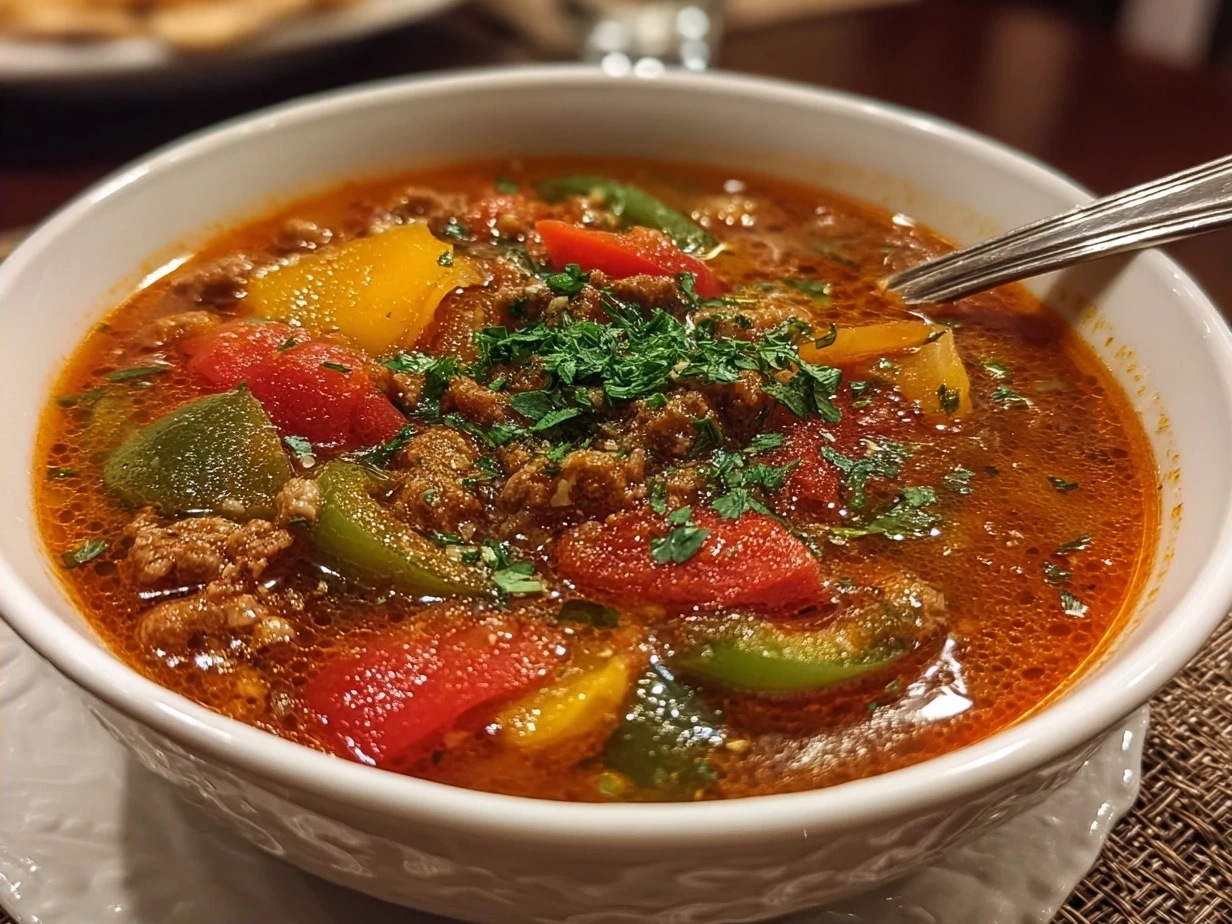A hearty, comforting soup that captures all the flavors of classic stuffed peppers in a warm, flavorful bowl perfect for any season.